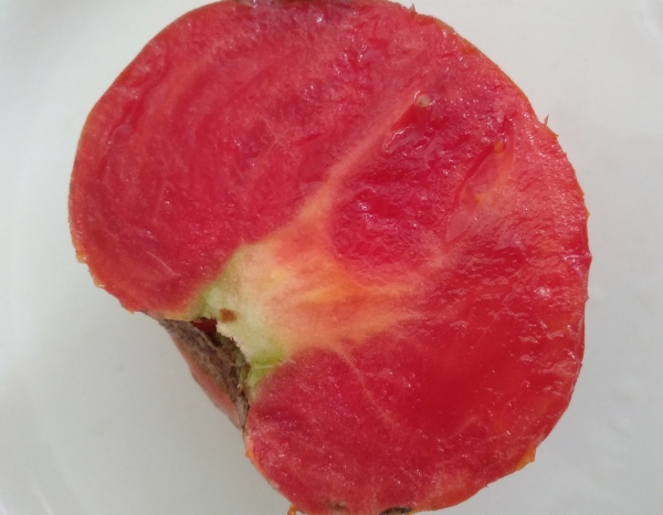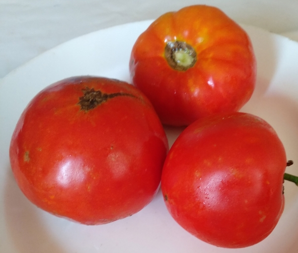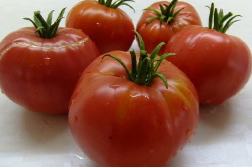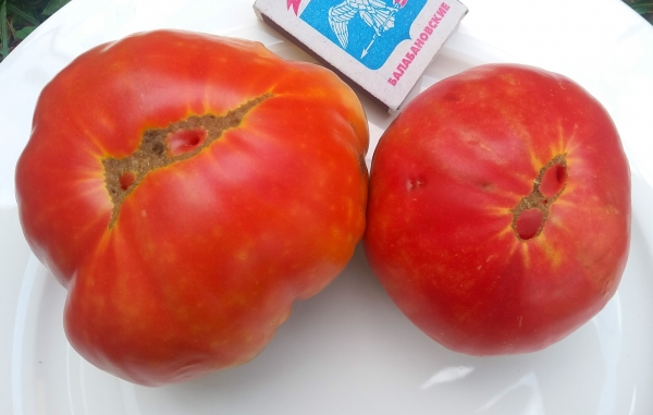 Плоды плоскоокруглые, ребристые, розово-красные, мясистые, с тонкой легко отделяемой кожицей, с насыщенным ароматом и сладкие на вкус. Масса плодов до 0,5 кг. Мякоть зернистая, по консистенции напоминает арбузную. Плоды идеально подходят для салатов, соусов, паст, соков. Высокоурожайный сорт среднего срока созревания. Кусты пышные, высота их достигает 1,7 - 2,5 м в зависимости от условий выращивания, устойчивы к заболеваниям.