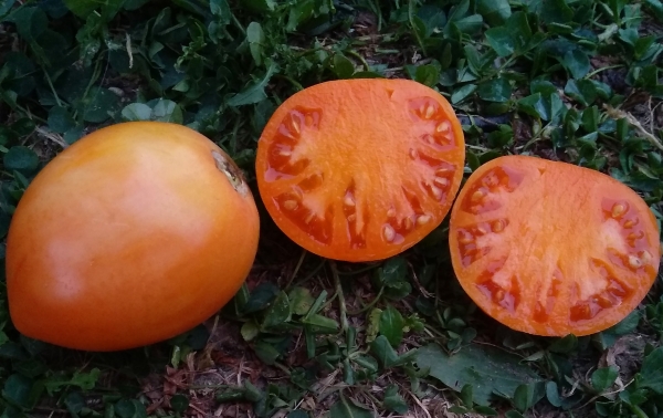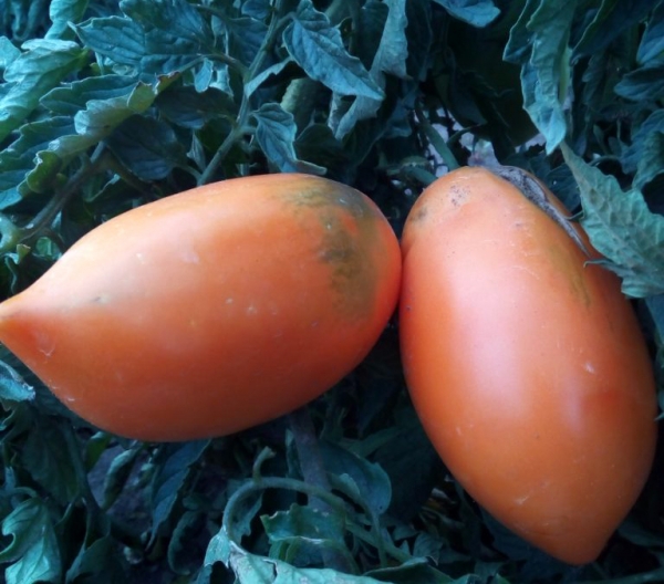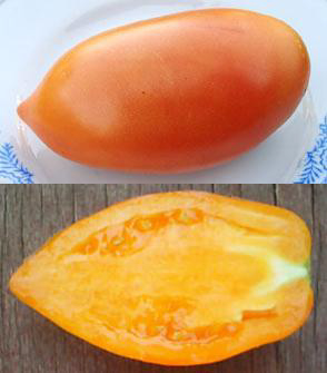 Плоды оранжевые, перцевидные, устойчивы к растрескиванию, хорошо переносят транспортировку и достаточно долго хранятся без потери товарных качеств. Мякоть превосходного вкуса, нежная и сочная, малосеменная. Плоды подходят для употребления в свежем виде, а лучше для консервации. В кистях по 5-7 плодов. Этому сорту нужно хорошо освещенное место. Плоды, выросшие в тени, становятся «мучнистыми». Масса плодов 100 -170 г. Среднеспелый, устойчивый, высокоурожайный сорт. Подходит для открытого и защищенного грунта. Кусты высотой 1,5 м и более.