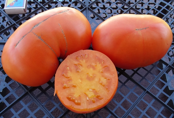 Плоды оранжевого цвета, округлые или плоскоокруглые. Масса плодов 230 - 620 г. Сорт средне-раннего срока созревания. Высота кустов 0,7 - 1 м.