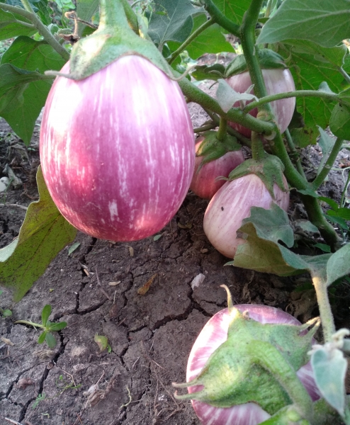 (Индия) Плоды каплевидные, светло-сиреневого цвета с розовыми штрихами и полосками. Масса плодов до 600 г. Мякоть белоснежная, без горечи. Средне-ранний сорт с высокой урожайностью. Растения сильнораскидистые, высотой 120-130 см.