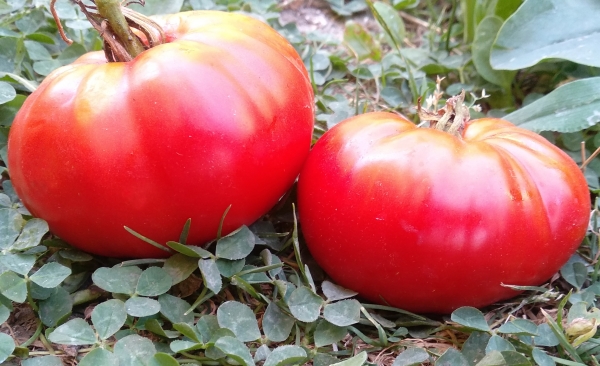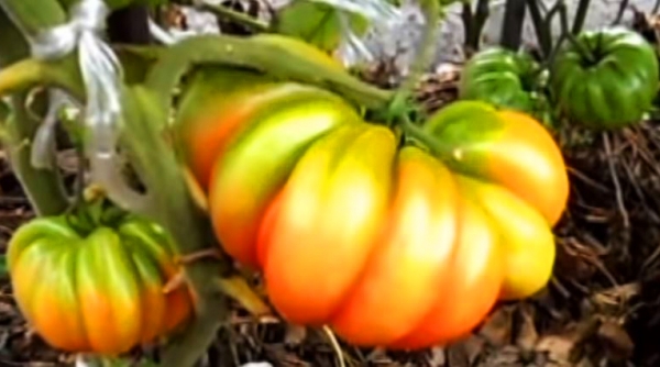 Плоды красные, ребристые, мясистые, сладкие, вкусные. Масса плодов может достигать 1,5 кг. Высокоурожайный сорт среднего срока созревания. Кусты высотой до 1,6 м.