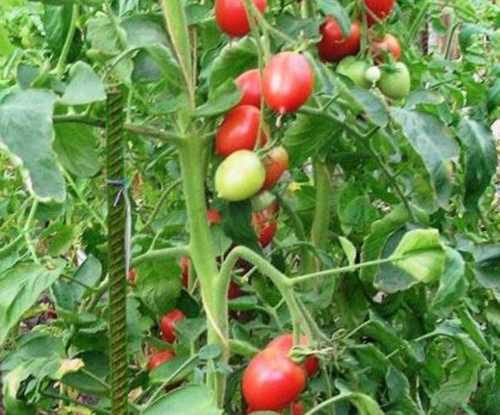 Плоды розовые овальные сливки с маленьким носиком, вкусные, лежкие, идеальные для консервирования. Масса плодов 60 - 120 г. Урожайный, среднеспелый сорт, устойчив к заболеваниям. Кусты высотой в открытом грунте - до 1,7 м, в теплице - до 2 м.