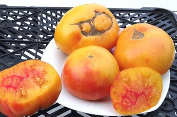 Плоды желтые с розовым румянцем, плоско-округлые, сладкие, вкусные. Масса плодов 150 - 300 г. Высокоурожайный среднеспелый среднерослый сорт. Кусты высотой до 1,2 м.