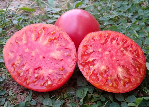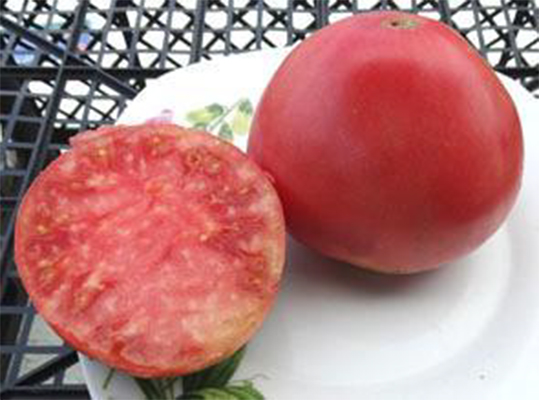 Плоды розовые, сердцевидные, ароматные, вкусные. Мякоть зернистая, сладкая. Масса плодов 200 - 400 г. Среднеспелый, высокоурожайный сорт. Отличительные его особенности - нетребовательность к погодным условиям и повышенная устойчивость к грибковым заболеваниям. Кусты высотой до 80 см, крепкие.