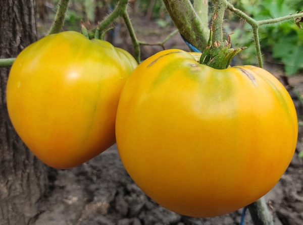 Плоды желто-оранжевые, с красной шапочкой на макушке, сердцевидные. Масса плодов 140 - 350 г. Мякоть очень вкусная, сочная, сладкая. Кусты высотой до 1 м, негустые, не требуется пасынкование. Раннеспелый, высокоурожайный сорт. По всем параметрам в своей группе один из лучших.