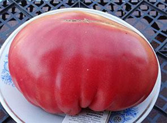 (США) Этот сорт можно считать идеальным. Плоды темно-красные, плоско-округлые, слегка сердцевидные, с гранями, без единого пятнышка, очень мясистые, превосходные на вкус и с приятным ароматом. Масса плодов 350 - 1200 г. Средняя масса примерно 500 - 600 г. Среднеспелый, супер урожайный сорт. Кусты высотой 1,5 м и более.