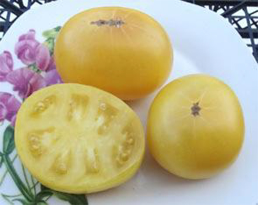 Типичный гном с картофельными морщинистыми листьями. Плоды желтые, круглые, плотные, гладкие, словно светятся, с приятным сладковато-лимонным вкусом. Масса плодов 90- 140 г. Урожайный сорт среднего срока созревания. Растения высотой до 80 см.