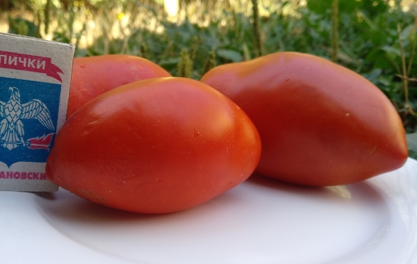 Крупная красная сливка, очень плотная и мясистая. Вкус превосходный сбалансированный. Плоды подходят для еды свежими и для консервирования. Масса плодов 150 - 300 г. Среднеспелый, урожайный сорт. Густые и мощные кусты высотой до 1,5 м.