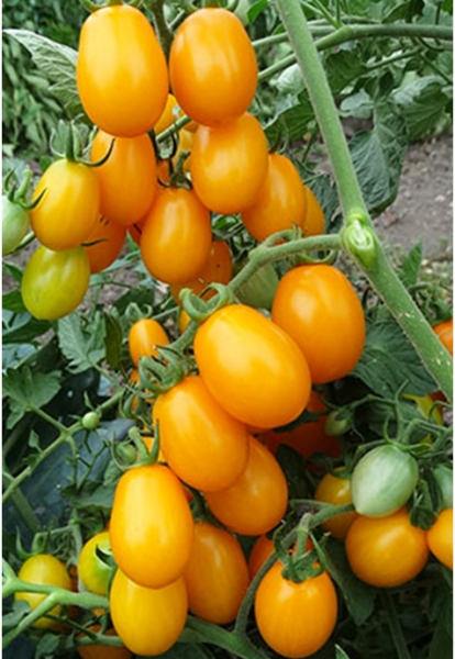 Плоды - желтые черри-сливки, сладкие и хрустящие, с уникальной плотностью и лежкостью: все плоды можно сорвать перед морозом, они будут висеть на кустах без потери качества весь сезон. Масса плодов 10 - 15 г. Сложные кисти плодов по 15 - 30 штук. Сверхранний сорт с фантастической урожайностью. Кусты высотой около 1 м.