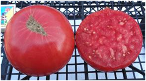 Семейная реликвия из Германии. Очень популярный сорт, известный своим богатым вкусом. Плоды розового цвета, плоско-округлые, упругие, мясистые, сочные, обладают удивительно богатым, хорошо сбалансированным вкусом. Масса плодов 250 - 600 г. Среднеспелый, высокоурожайный сорт. Кусты высотой до 1,8 м, с крупными картофельными листьями.