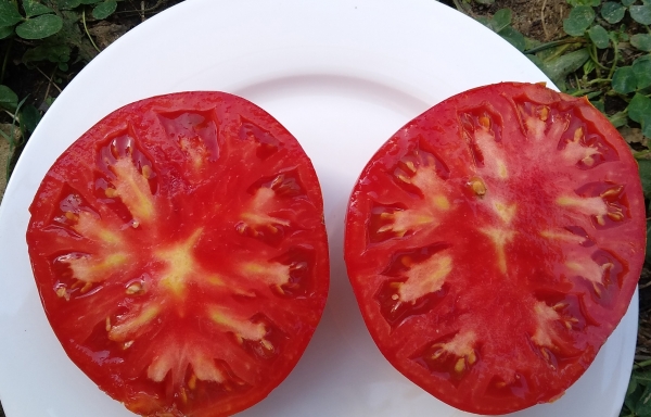 В США на томатном фестивале в 2006 г этот сорт был представлен плодом с рекордным весом 1675 г. Обычно вырастают плоды массой до 1,2 кг. Плоды красные, ребристо-сердцевидной формы, имеют хороший сбалансированный вкус и аромат. Кусты высотой до 1,2 м. Сорт среднего срока созревания.