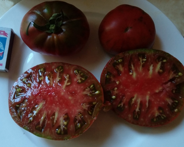 Получен от случайного опыления сорта Капитан Лаки. Плоды плоско-округлые или сердцевидные, темно-малиновые с темными плечиками. Мякоть малиновая, сочная. Кожица нежная, но не склонна к растрескиванию. Масса плодов 200 -500 г. Очень урожайный среднеспелый сорт с высокой устойчивостью. Кусты высотой 1,7 - 1,8 м.