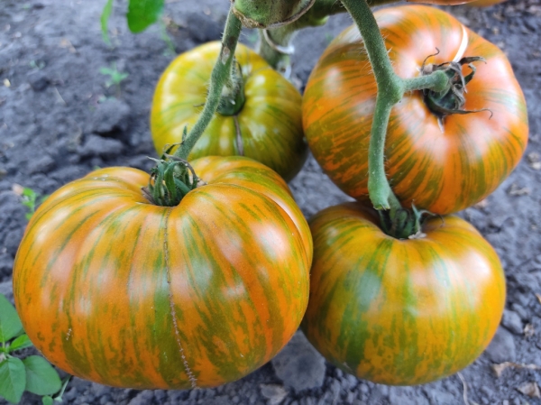 Новинка! Плоды темно-оранжевые с зелеными штрихами, хороши на вкус, малосеменные, мясистые, салатные. Масса плодов 300 - 500 г, отдельные - до 800 г. Высокоурожайный сорт среднего срока созревания, с растянутым периодом плодоношения. Кусты крепкие, высотой до 1,8 - 1,9 м, с крупными листьями.