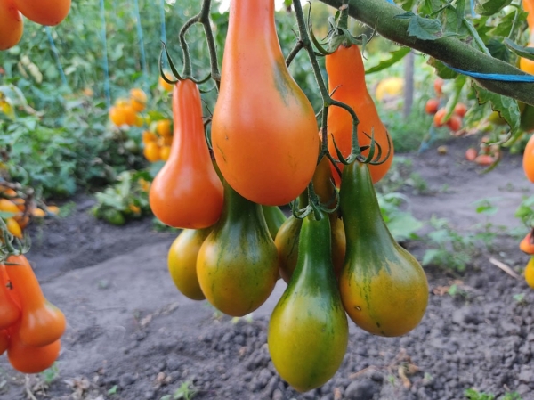 Новинка! Плоды насыщенного оранжевого цвета, в форме груши с удлинённой шейкой, плотные, мясистые, лёжкие, сладкие. Масса плодов до 150 г. При созревании длительное время сохраняются на кустах. Плоды отлично подходит для консервирования. Высокоурожайный среднеспелый сорт с длительным периодом плодоношения. Кусты высотой до 1,8 м, среднеоблиственные.