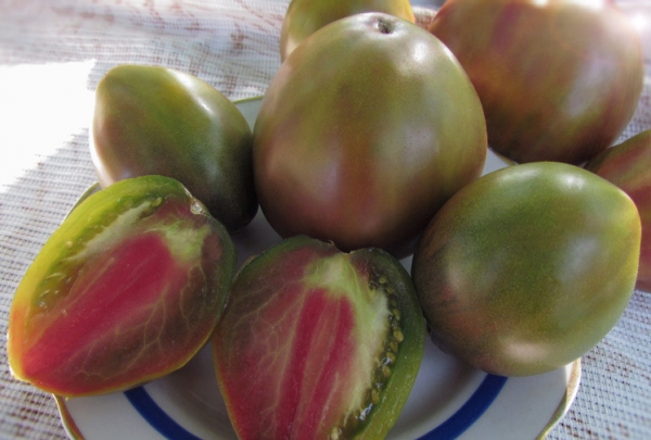 Новинка! Сорт получен в результате мутации гнома Tasty Wine/Вкусное Вино. Плоды в основном сердцевидные (но встречаются также овальные), не растрескиваются, зелёного цвета с багряным румянцем, мясистые и сочные, вкусные, с лёгкой кислинкой. Мякоть зелёно-багрового цвета, при полном созревании в окраске преобладает багровый цвет. Масса плодов 150 - 250 г (первые иногда до 300 г). Среднеспелый, урожайный сорт. Растение высотой 60 - 70 см (в открытом грунте).