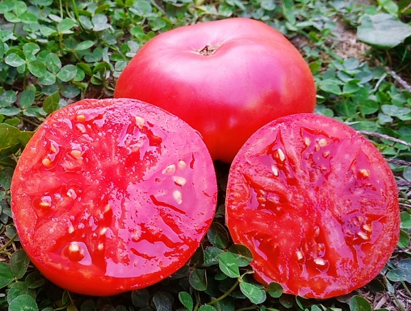 Новинка! Один из лучших сортов-гномов этого сезона. Плоды очень крупные для сортов-гномов, плоскоокруглые с пышными плечиками, насыщенного малиново-розового цвета. Масса плодов до 350 – 400 г. Мякоть вкусная, довольно плотная. На вкус плоды превосходны, сочетают в себе сладость и терпкость. Урожайный среднеспелый сорт. Кусты высотой около 80 см, с крупными морщинистыми листьями обычного типа.
