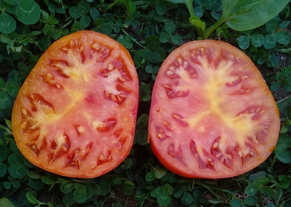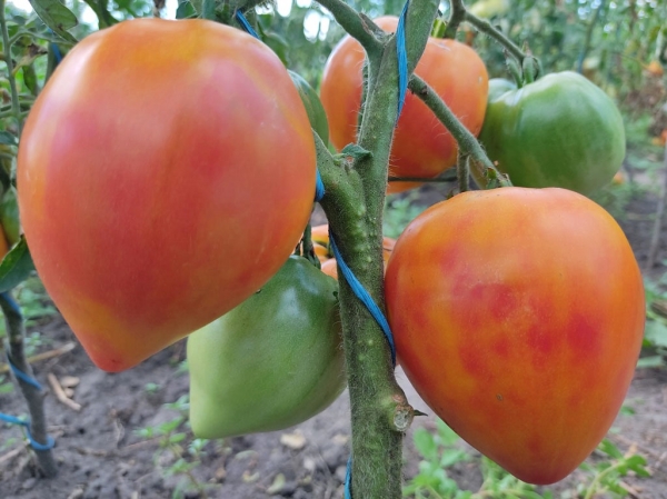 Новинка! Автор сорта селекционер Виталий Геннадьевич Алифиров, Казахстан. Плоды-биколоры, желто-оранжевые с розовыми пятнами и верхушкой. Масса плодов 200 - 400 г, максимум до 570 г. Мякоть также двухцветная, достаточно сладкая, с фруктовым привкусом. Урожайный, среднеспелый сорт. Кусты высотой 1,6 - 1,8 м.