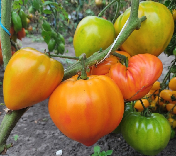 Новинка! Автор сорта селекционер Виталий Геннадьевич Алифиров, Казахстан. Плоды-биколоры, сердцевидные, желто-оранжевые с красным румянцем, мясистые, в меру плотные, с насыщенным ароматом, сладкие с небольшой кислинкой. Масса плодов 200 - 500 г. Для потребления в свежем виде и салатов. Высокоурожайный среднеспелый сорт, плодоносит до заморозков. Высота кустов 1,7 - 1,9 м.