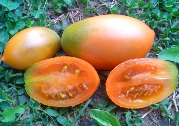 Новинка! Сорт создан Шерри Лонг (Sherry Long), скрещиванием Orange Banana с одним из сортов проекта Dwarf tomato. C сортом также работали Крейг Леулье (Craig LeHoullier), Сьюзен Оливерсон (Susan Oliverson) и Билл Минки (Bill Minkey). Плоды удлиненные, сливовидные, цвета охры, зеленоватые, крепкие. Масса плодов 70 - 140 г. Мякоть пастообразная, с идеально сбалансированными вкусовыми качествами. Урожайный среднеспелый сорт. Кусты высотой около 70 см.