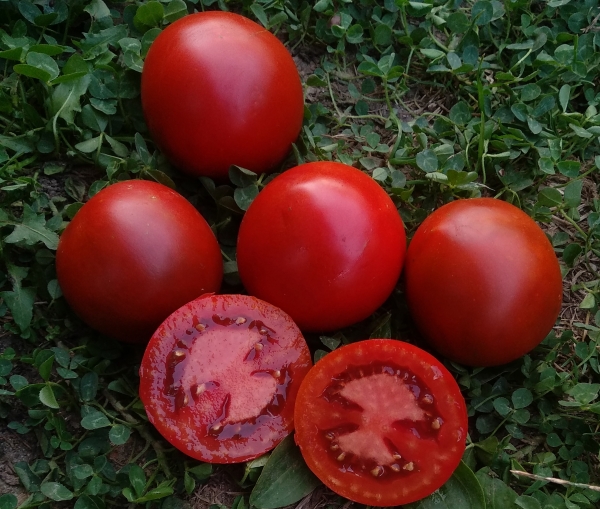 Новинка! (США) Плоды круглые, темно-красные, с зелеными мазками, мясистые. Мякоть вишневая, вкусная, сладкая. В кистях по 5 - 7 штук. Масса плодов 100 - 200 г. Высокоурожайный среднеспелый сорт. Кусты высотой до 2 м.