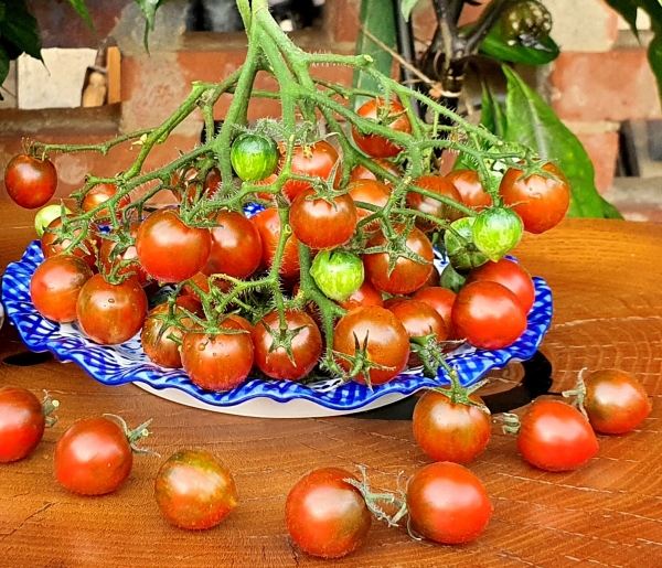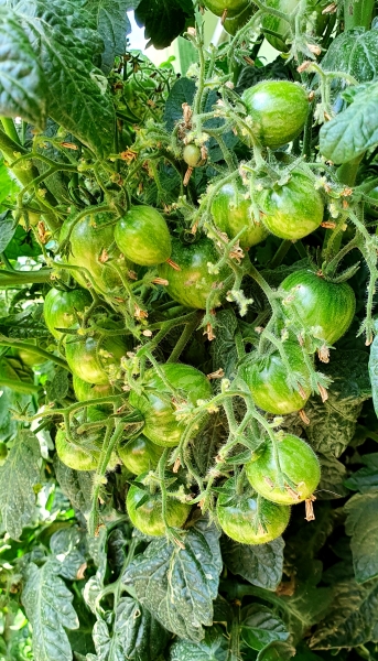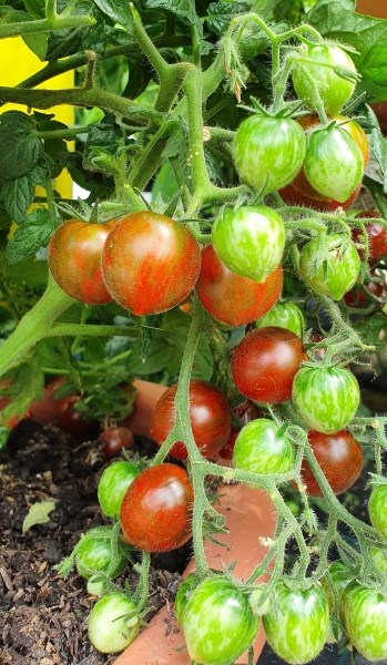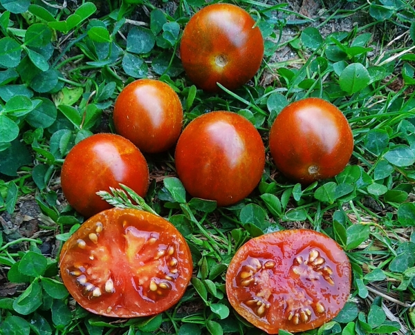 Новинка! (США) Сорт карликовый мультифлорного типа. Плоды шоколадно-коричневые с зелеными полосами, сливовидные, с небольшим носиком. Мякоть сочная, вкусная. Масса плодов 15 - 35 г. Урожайный среднеранний сорт. Кусты крепкие, высотой до 60 см, с морщинистой листвой. Цветут огромными кистями, но завязываются не все. Кисти бывают по 40 - 60 плодов. Отлично подходят для выращивания в горшках.