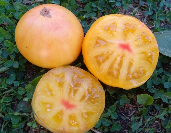 Новинка! (Австралия) Сорт из линии Harmony, полученной в результате скрещивания Dwarf Blazing Beauty и Dwarf Sweet Sue Патриной Нуске Смолл. Плоды плоскоокруглые, кремово-желтые, при полном вызревании с небольшой розовинкой и розовым ядром в середине мякоти. Масса плодов 120 - 240 г. Мякоть сочная, сладковатая. Растение компактные штамбовые, высотой до 1,20 м, с морщинистой картофельной листвой. Высокоурожайный среднеспелый сорт.