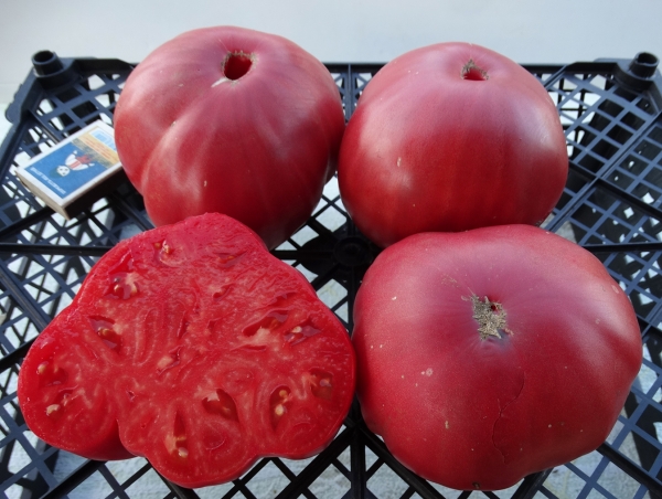 Сорт селекции Дальневосточного НИИСХ. Плоды круглые или плоскоокруглые, слегка ребристые, розовые, на разрезе темно-малиновые, мясистые. Масса плодов 400 - 700 г. Мякоть сочная, сладкая с легкой кислинкой. Кожица тонкая. Урожайный среднеранний сорт. Кусты высотой до 1,8 м, хорошо облиственные.
