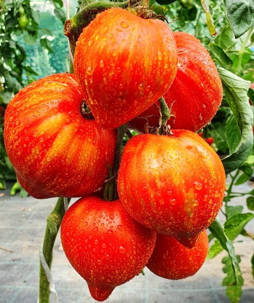 Новинка! (Польша) Новейший сорт, выведенный Анной Янковски. Плоды сердцевидные с удлиненным носиком, красного цвета, с небольшими золотистыми штрихами, малосеменные, мясистые, вкусные, ароматные. Масса плодов 200 - 350 г. Кусты высотой до 1,5 м. Высокоурожайный среднеспелый сорт, с длительным периодом плодоношения.